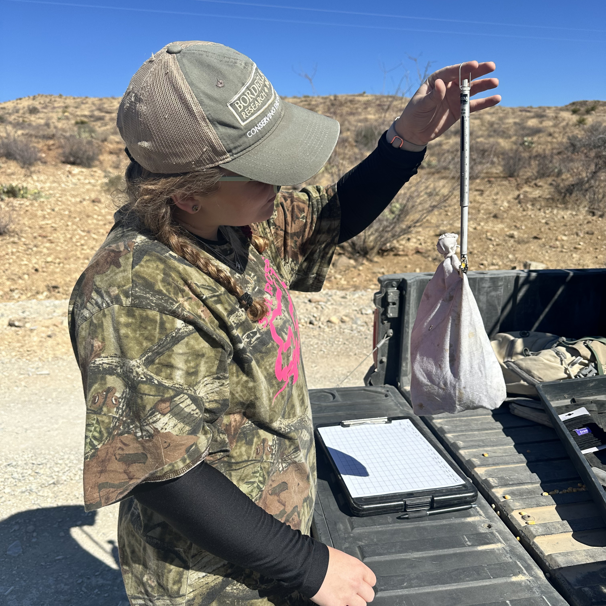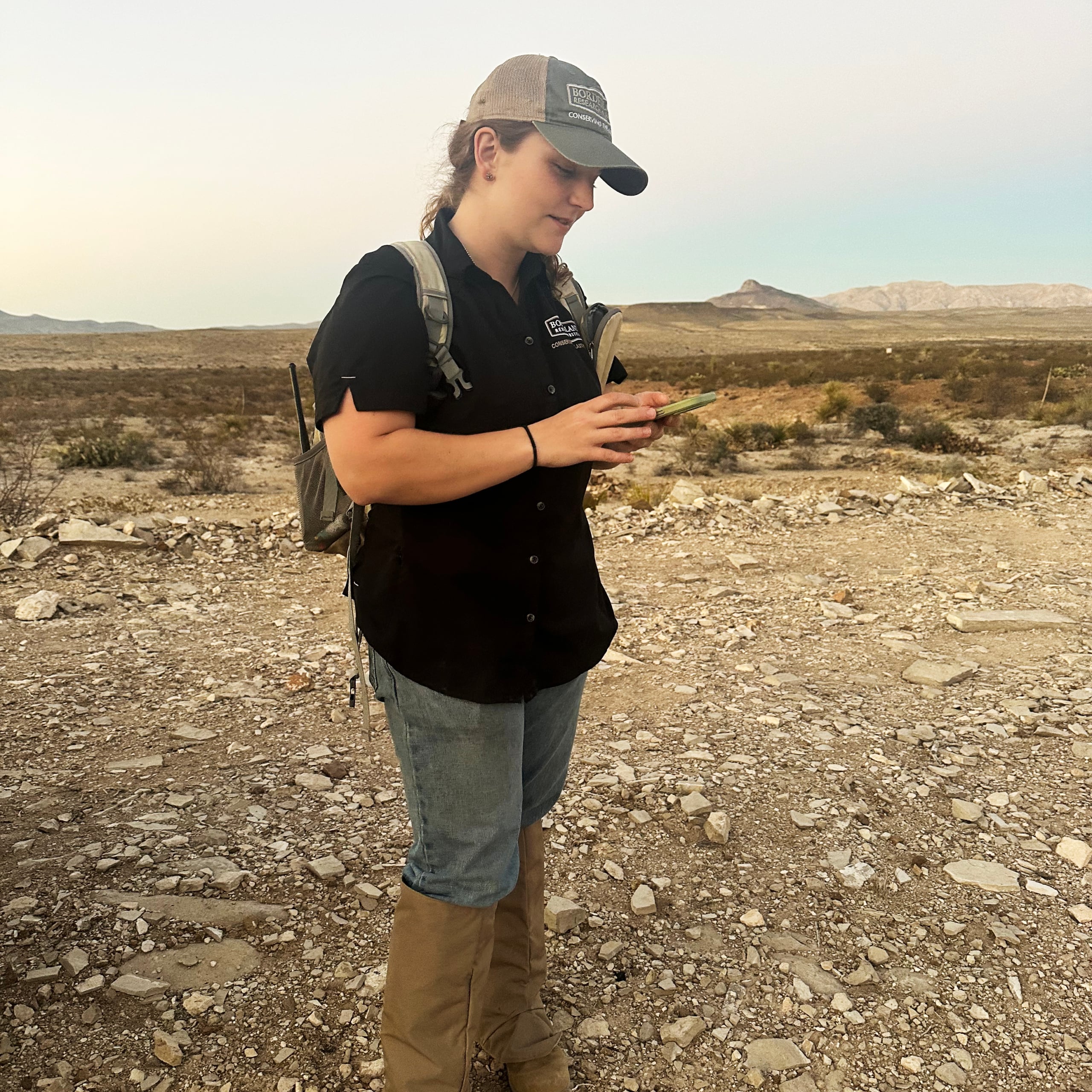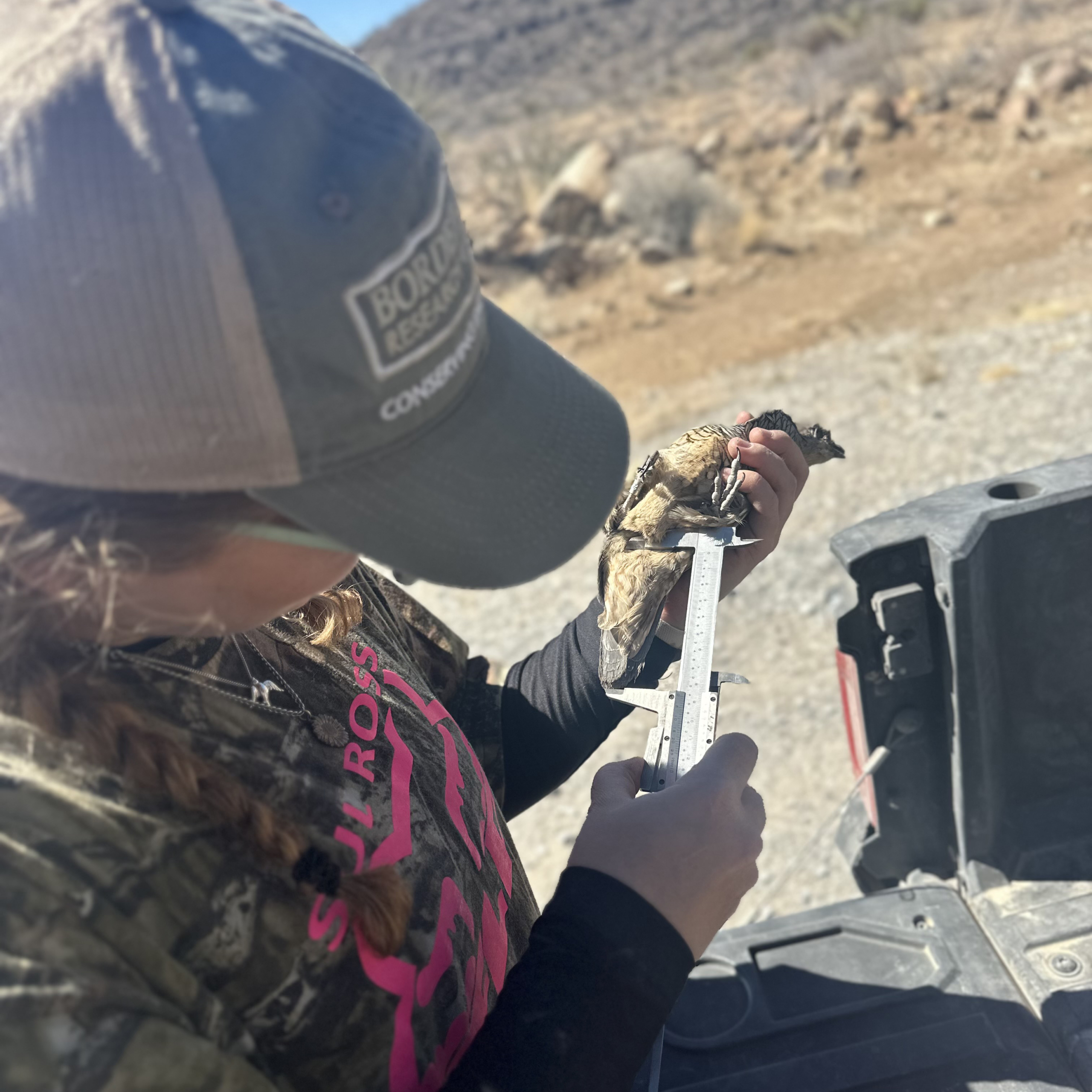 When the temperature drops and the days get shorter as winter approaches, Scaled quail (Callipepla squamata) join large groups called coveys. This quail species is known to form coveys of up to 200 birds! Forming coveys increases predator awareness and improves thermal regulation. As the days warm and Spring arrives, this signals the coveys to break up in preparation for the breeding season, when quail begin to separate into mating pairs. Hayley Shultz, a master’s student with the Borderlands Research Institute, aims to better understand how Scaled quail alter their movements in response to seasonal changes throughout the year. Her study site is a private ranch in South Brewster County, Texas.